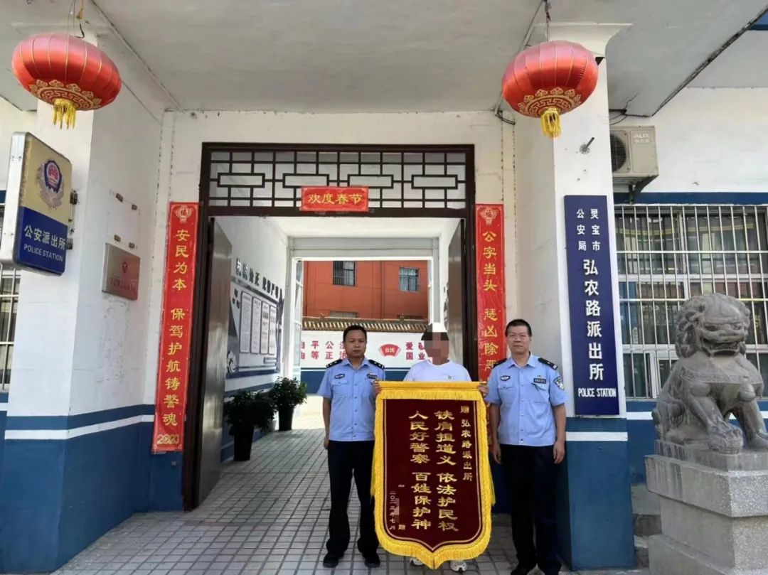 7月25日,一位群眾來到弘農(nóng)路派出所,將一面“人民好警察,百姓保護(hù)神”錦旗送到民警手中,感謝幫助他拿回被騙的13000元錢。