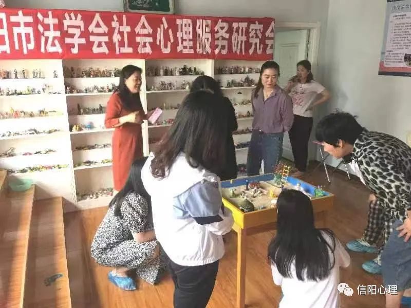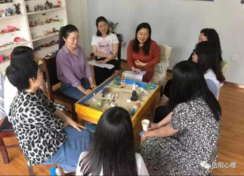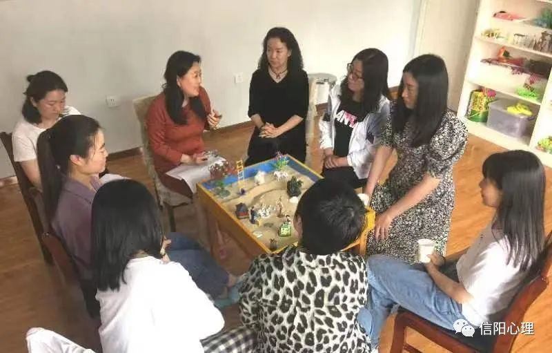 經(jīng)過正念冥想和4輪團(tuán)體沙盤游戲的制作,進(jìn)入了沙盤游戲的討論階段。各位團(tuán)體活動(dòng)的參加者都敞開心扉,踴躍發(fā)言,暢談自己的所思所想和美好愿景。沙盤游戲活動(dòng)期間,歡笑聲此起彼伏,氣氛熱烈。最后,大家不約而同地認(rèn)為今天團(tuán)隊(duì)共同創(chuàng)建的沙盤作品就像一個(gè)“和諧世界”,也是“美好生活看信陽”的一個(gè)縮影。
