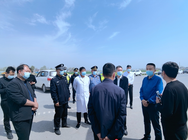 在潮莊鎮(zhèn),從4月4日起,睢縣法院志愿者干警就到大趙村兩個疫情防控卡點開展志愿服務,日夜堅守,節(jié)假不休。馬法會同潮莊鎮(zhèn)黨委書記吳金梅、潮莊鎮(zhèn)鎮(zhèn)長袁洋一行,到卡點慰問志愿服務隊干警,鼓勵他們堅守崗位,弘揚志愿服務精神,切實筑牢疫情防控第一線。