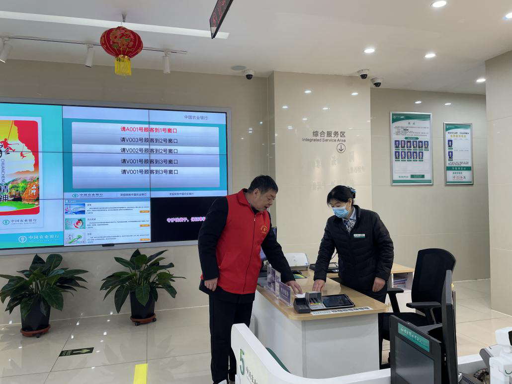 在民工的帶領(lǐng)下,老白走進了工頭家中。經(jīng)過協(xié)商工頭同意用房子作抵押貸款發(fā)工資,老白又及時協(xié)調(diào)農(nóng)行,特事特辦,二十九日上午,各項手續(xù)上報。下午五點,貸款下來了,三名組長給民工們兌了現(xiàn)。二十九名民工高興地說,終于能趕回老家過上一個開心年了。(下圖為老白正在農(nóng)行等待工作人員辦理手續(xù))