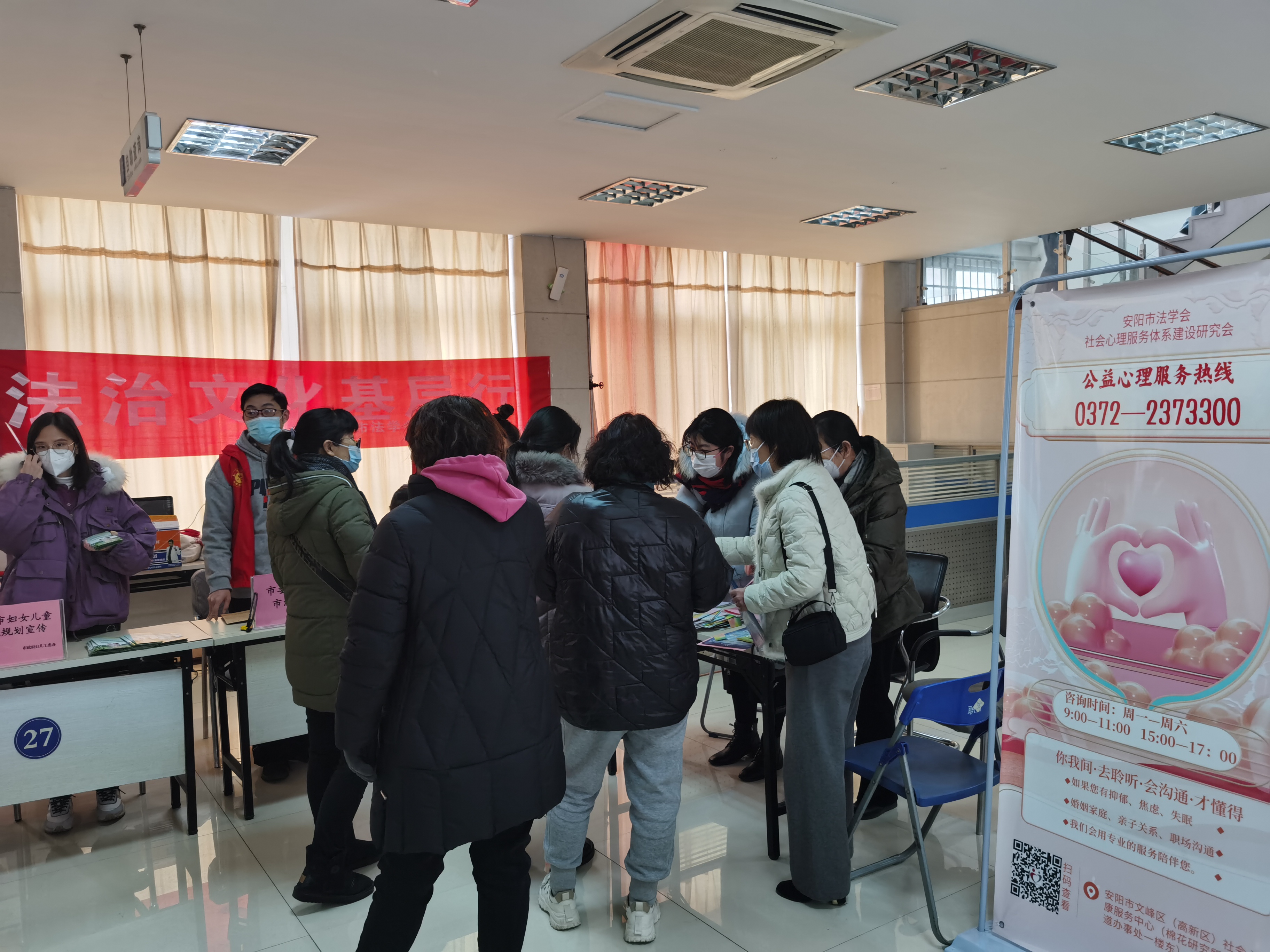 經(jīng)歷了“疫情轉(zhuǎn)段”和“超長寒假”,中小學(xué)陸續(xù)開學(xué)后學(xué)生心理健康問題、親子關(guān)系問題突顯,安陽市法學(xué)會(huì)結(jié)合工作職能優(yōu)勢(shì),經(jīng)過深入調(diào)研,組織市法學(xué)會(huì)社會(huì)心理服務(wù)體系建設(shè)研究會(huì)和北關(guān)區(qū)法學(xué)會(huì)開展法治宣傳活動(dòng),并同步開展公益心理咨詢。