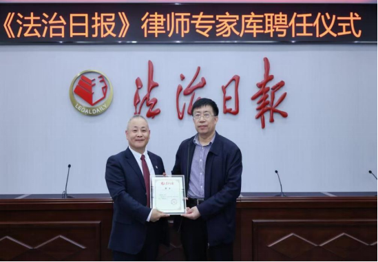 為凝聚律師群體智慧,賦能中國(guó)律師行業(yè),充分發(fā)揮律師群體在法治建設(shè)、普法宣傳、為法治建設(shè)建言獻(xiàn)策等方面的作用,2021年5月11日,《法治日?qǐng)?bào)》舉行首批律師專家聘任儀式,首批聘請(qǐng)了86名資深律師進(jìn)入律師專家?guī)臁:幽鲜》▽W(xué)會(huì)常務(wù)理事、省法學(xué)會(huì)證券法學(xué)研究會(huì)常務(wù)副會(huì)長(zhǎng)李曙衢作為《法治日?qǐng)?bào)》首批律師專家受邀參加本次儀式。