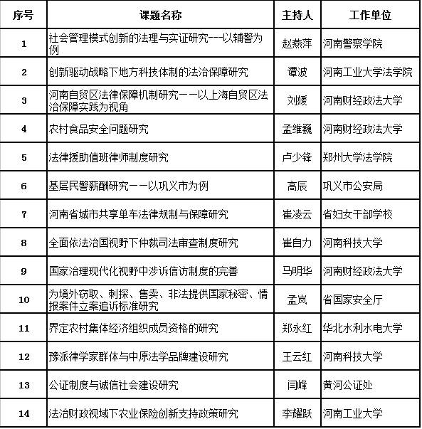 2017年度河南省法學(xué)研究課題立項(xiàng)名單
