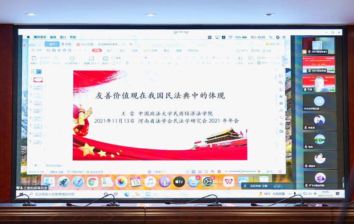 2021年11月13日,由河南省法學(xué)會民法學(xué)研究會主辦,華北水利水電大學(xué)法學(xué)院、河南天基律師事務(wù)所共同承辦的“河南省法學(xué)會民法學(xué)研究會2021年年會”在線上隆重舉行。會議的主題是:《民法典》的解釋與適用。根據(jù)直播平臺的統(tǒng)計,高校、法院、檢察院、政府、律所等單位共計2.8萬多人在線上觀看了直播,5.2萬人點贊,200多名代表線上參加會議,近百名專家在線上參與視頻研討發(fā)言。研究會常務(wù)副會長、河南財經(jīng)政法大學(xué)法學(xué)院尹西明教授主持開幕式。