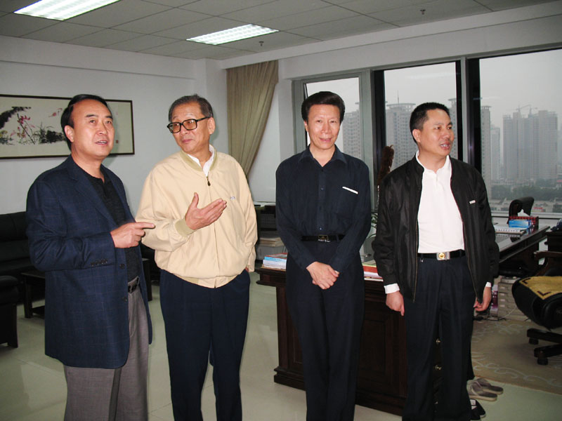 宋樹濤(左二)、梁毅(右二)、張?jiān)倏ㄓ乙唬┰跅钗慕芘阃乱暡焓》▽W(xué)會(huì)機(jī)關(guān)