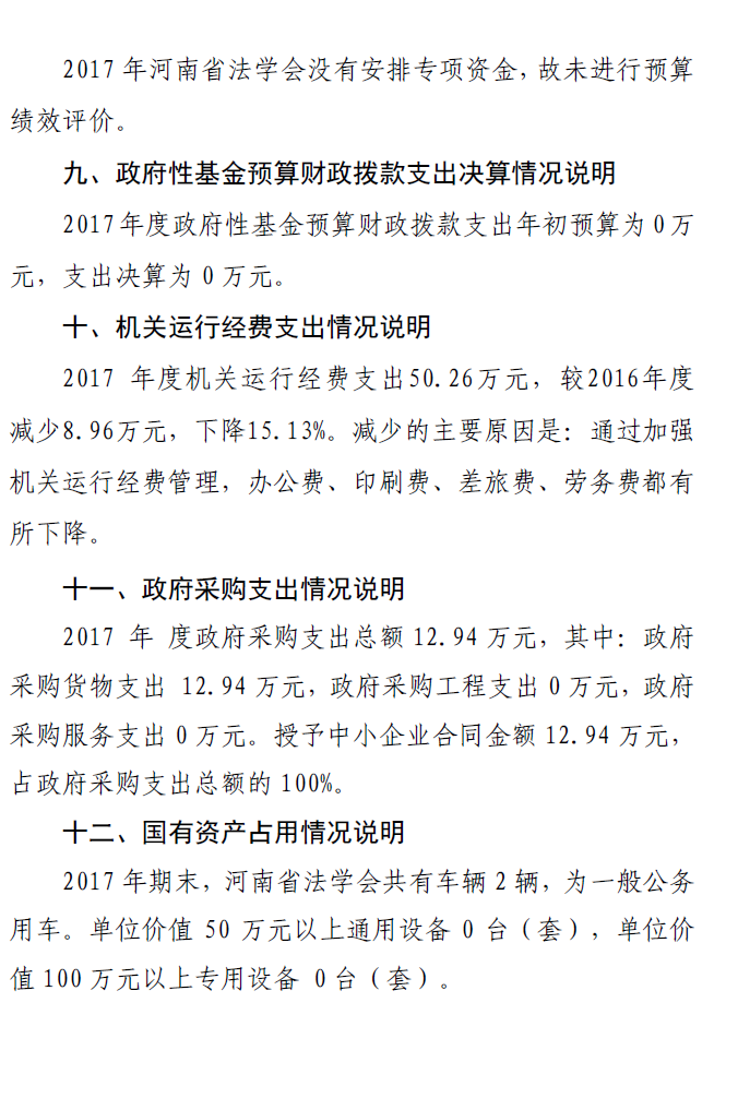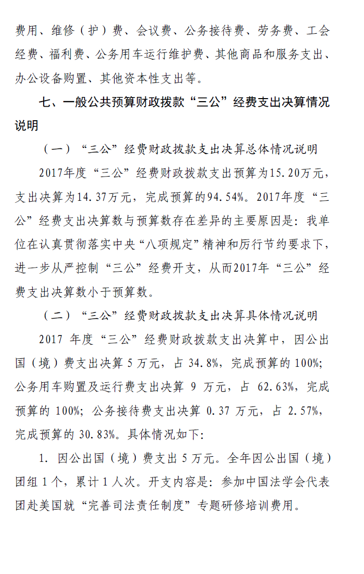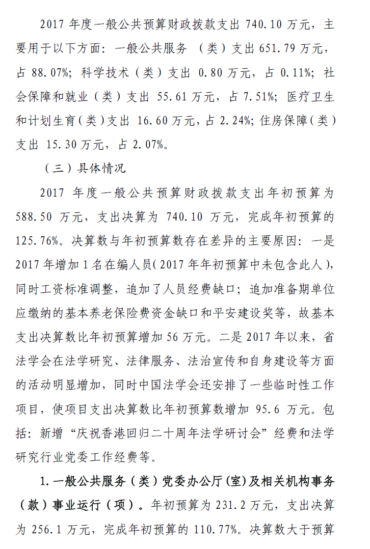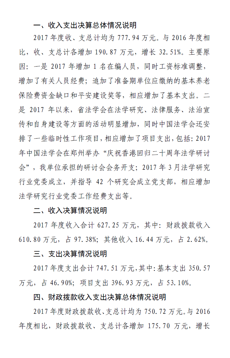 省法學(xué)會2017年度部門決算公開