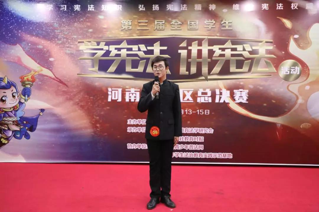 為深入貫徹黨的十九大和十九屆二中、三中全會精神,堅持以習近平新時代中國特色社會主義思想為指導,認真落實中央關(guān)于深入學習宣傳和貫徹實施憲法的有關(guān)精神,按照省教育廳《關(guān)于組織開展憲法學習宣傳教育活動的通知》要求。10月14-15日,第三屆全國學生“學憲法講憲法”活動河南賽區(qū)總決賽在鄭州舉行。比賽由省教育廳主辦,省法學會教育法學研究會、河南教育時報社承辦。省教育廳副廳長,省法學會教育法學研究會會長尹洪斌到場觀看比賽并為獲獎選手頒獎。