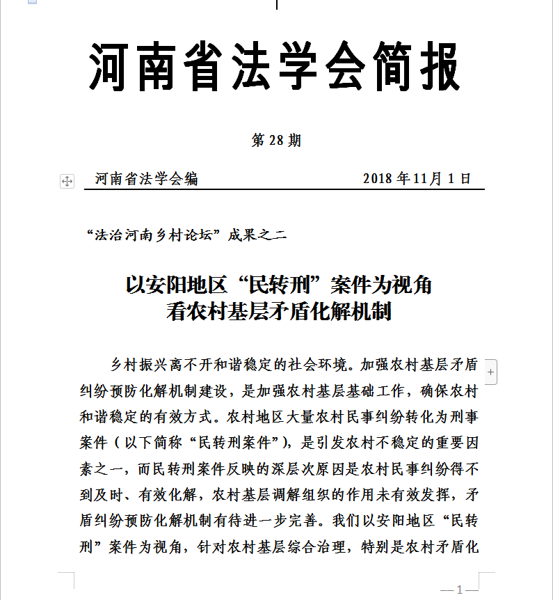 河南省法學會簡報“法治河南鄉(xiāng)村論壇”成果之二