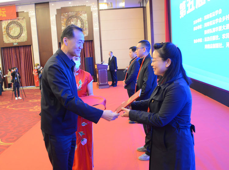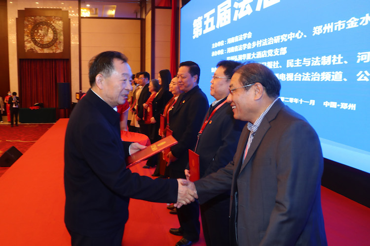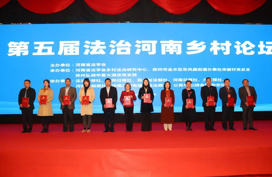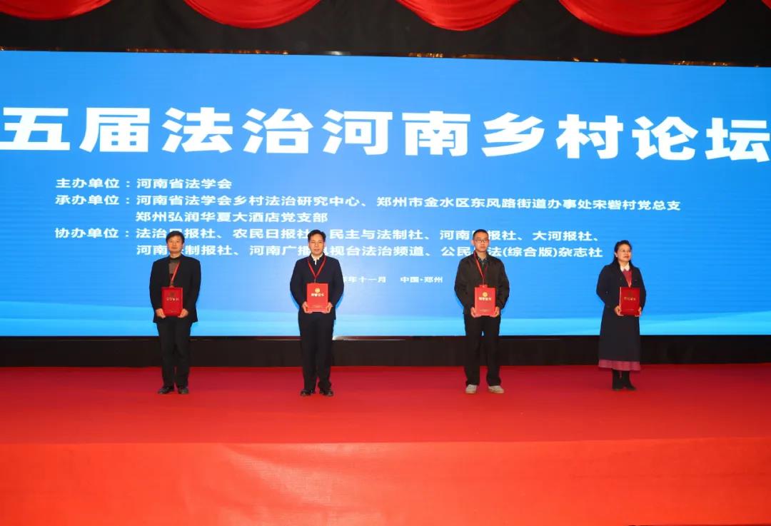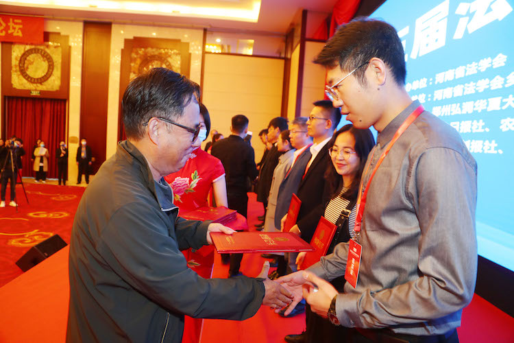 原河南省委農辦副主任,省法學會鄉(xiāng)村法治研究中心常務理事鄭林為三等獎獲得者代表頒獎